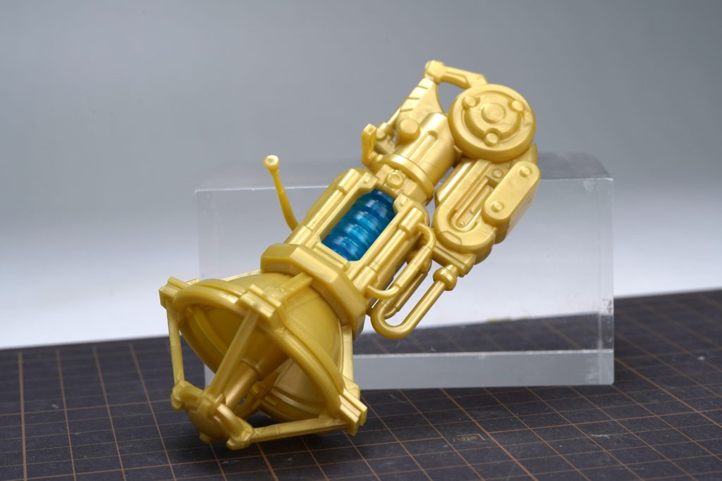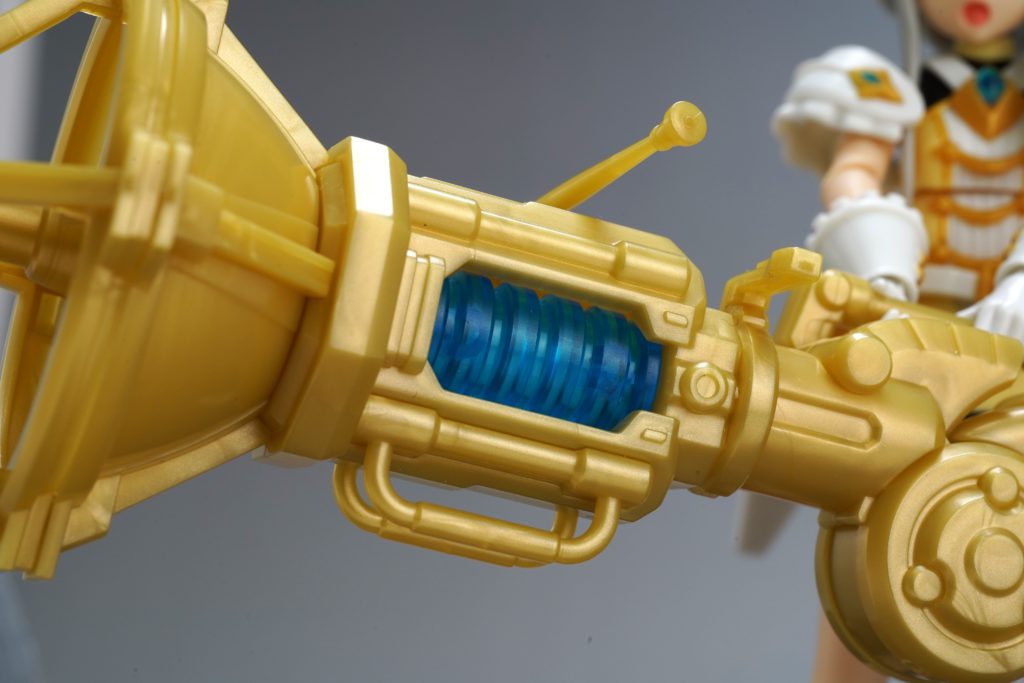 無骨になりがちな巨大武器も、中央に配置されたクリアブルーのタンクのおかげで、SFチックで美しい仕上がりに。