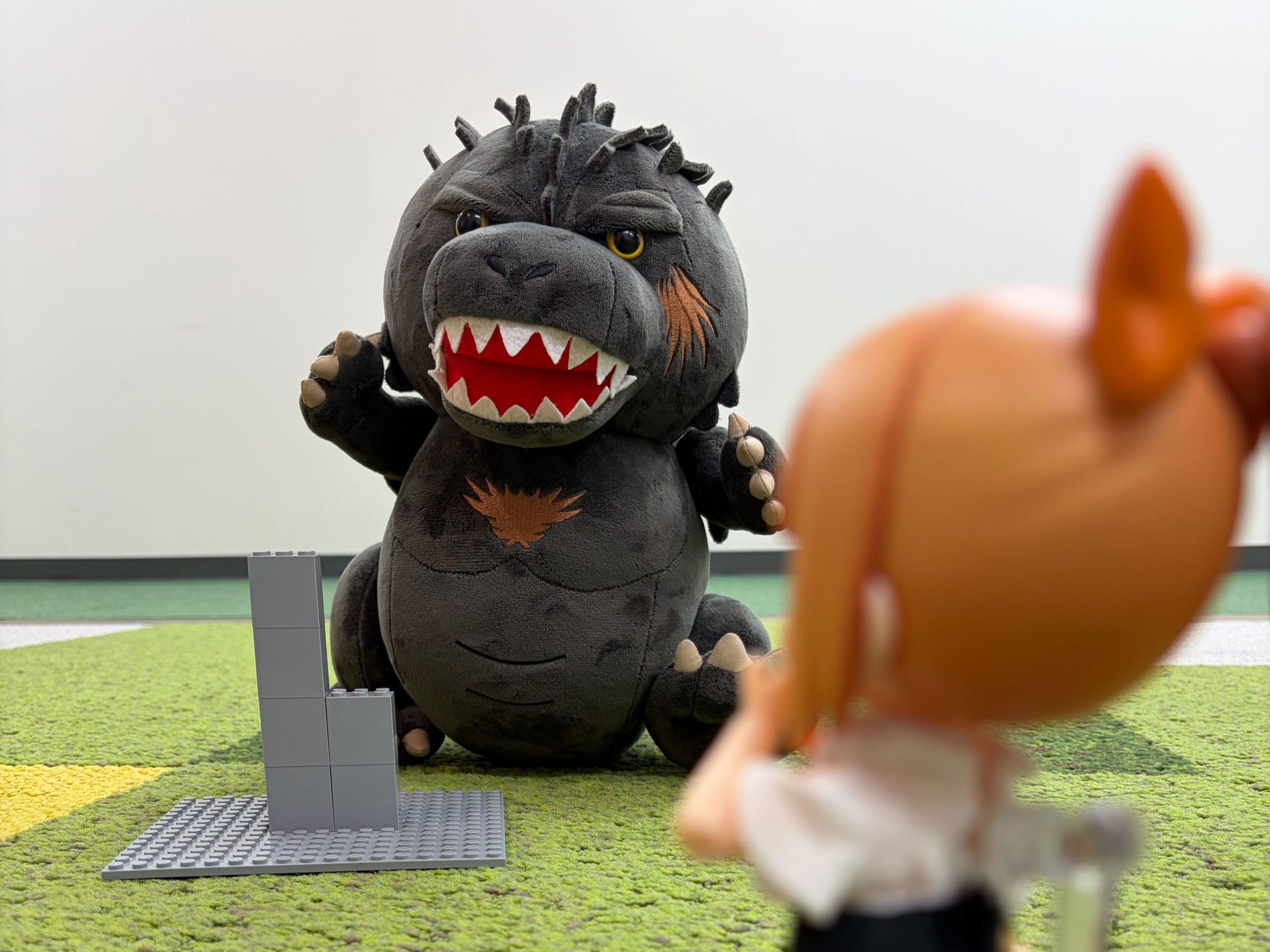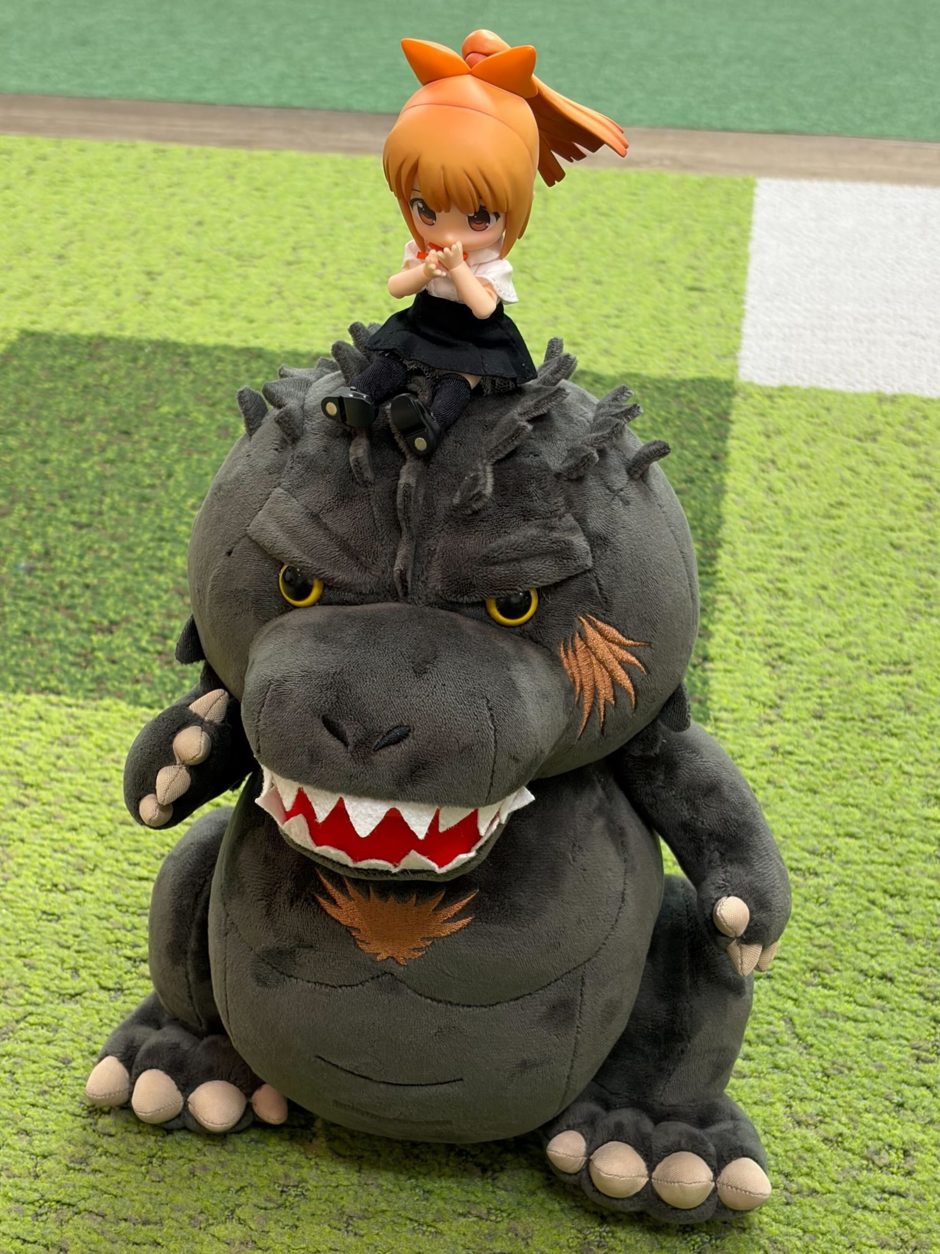 ねんどろいどは全高約10cm。ぬいぐるみゴジラの大きさが際立ちますね!